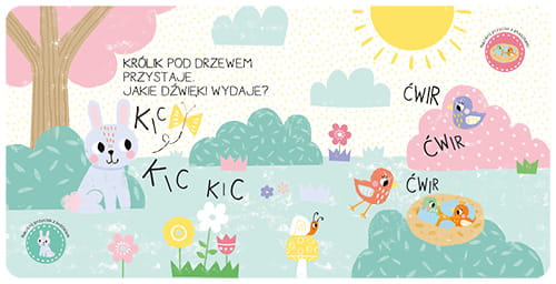 Książka wprowadza małych czytelników w magiczny świat ogrodu. Dzieci znajdą w niej krótkie teksty oraz urocze ilustracje, które pomagają rozpoznać dźwięki wydawane przez zwierzęta, takie jak piesek, pszczoła czy królik. 12 różnorodnych dźwięków sprawia, że każda strona książki jest pełna niespodzianek, które angażują maluchy do zabawy i nauki.